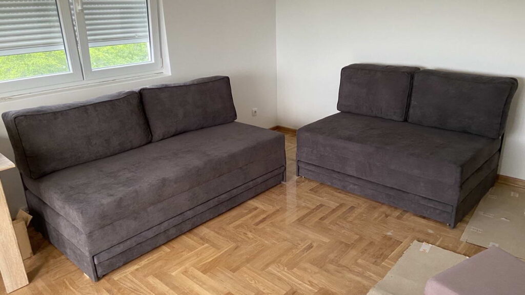 Dvosedi od žičanog jezgra su fantastični za manje prostorije gde vam je potreban slobodan prostor preko dana, lako se razvlače i postaju udoban i komforan bračni ležaj. Mogućnost izrade po meri. Svaki dvosed poseduje kutiju za posteljinu . Ram i kutija su od punog drveta. Mogućnost odabira rukonaslona, mebla, dimenzija, jastuka…